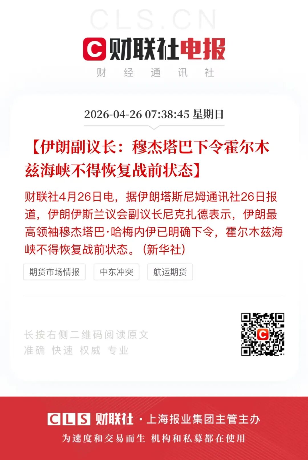 以“美国优先”为最高行事原则的美国元首,在社交媒体上高调发帖,宣布取消美方代表前往巴基斯坦首都伊斯兰堡与伊朗方面的会晤。紧接着,关于伊朗在霍尔木兹海峡维持不进反退的强硬管控等消息,也开始密集冲击全球市场的预期,比如伊朗国内高层罕见地一致表态,伊朗不会在压力、威胁和封锁下进行谈判;而伊朗最高领袖穆杰塔巴更是严令,“霍尔木兹海峡不得恢复战前状态”。