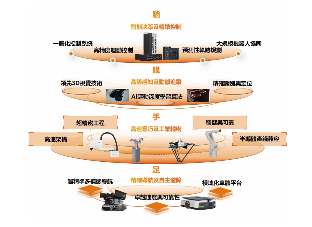 从技术侧来看,翼菲科技的机器人架构围绕熟练技术工人四大核心功能—“脑”、“眼”、“手”、“足”构建,实现智能决策、环境感知、精确操控及自主移动。其中,“脑”体现于翼菲科技的一体化控制系统,支持智能决策,实现高速高精度运动及实时多机器人协同;“眼”代表先进视觉系统,结合3D成像与深度学习算法,是高精度动态跟踪的关键;“手”将先进建模技术与精密制造相结合,以达致稳定性能及工业级可靠性;“足”由自主研发的移动平台硬件和调度软件组成,支持自主导航和动态避障。这些功能共同构成了翼菲科技产品的紧密协同且可扩展的技术基底。
