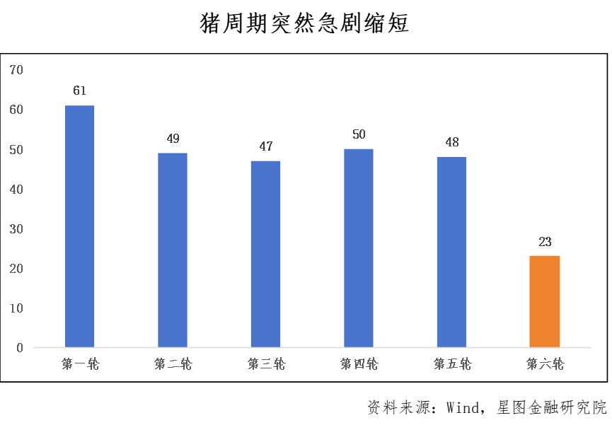 仅凭深度亏损本身,或许并不值得过分担忧,毕竟在行业下行周期中,亏损并不罕见。真正值得关注的是,非洲猪瘟疫情过后,猪周期出现了一个非常显著的变化—周期长度明显缩短。