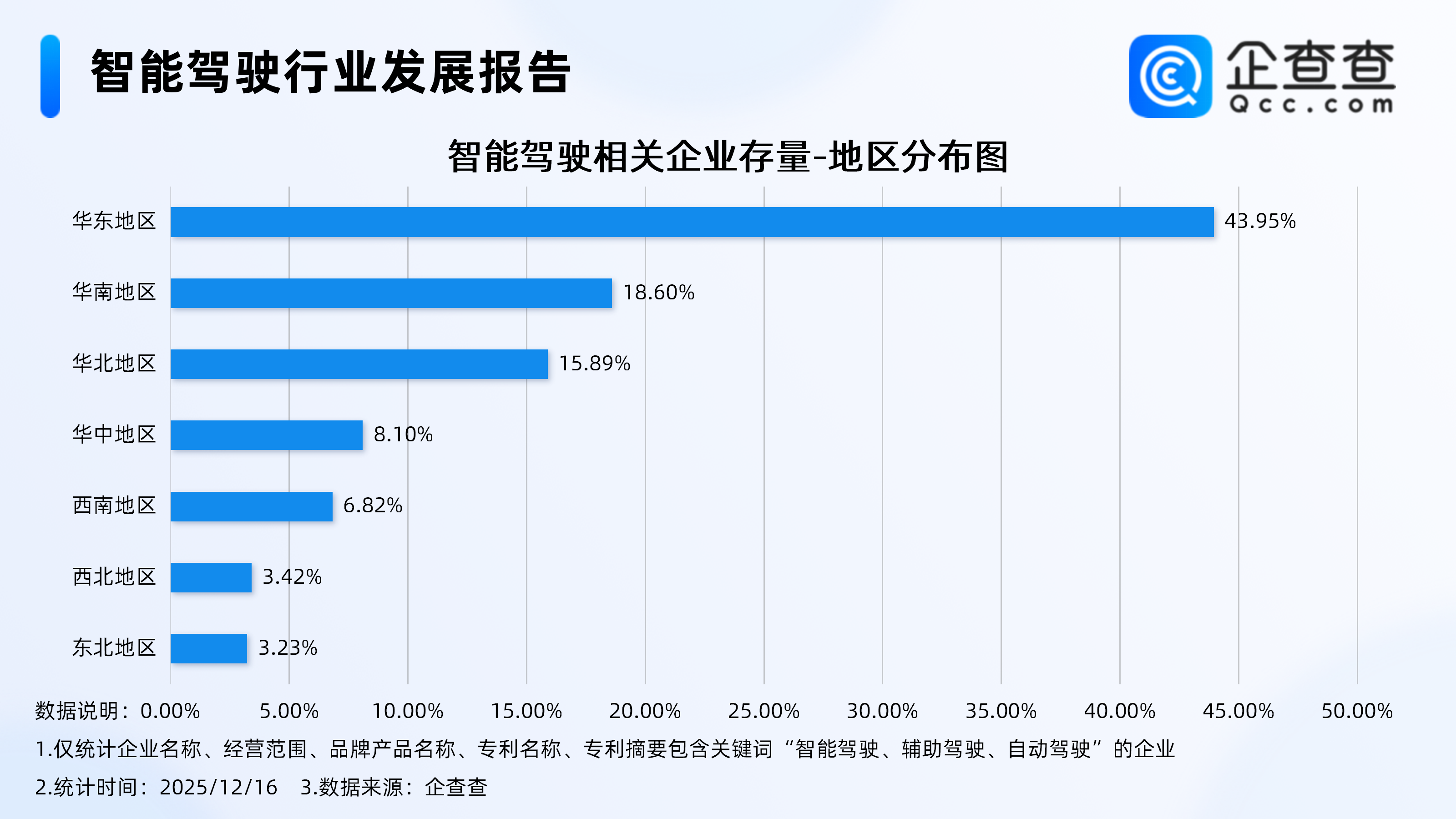 企查查数据显示,截至12月16日,国内现存智能驾驶相关企业7641家。从经营时间来看,相关企业多为老牌企业,成立年限在5年以上的企业超八成,其中在10年以上的相关企业最多,占比46.21%。从注册资本分布来看,智能驾驶相关企业多为资金密集型企业,注册资本在千万级以上的相关企业超七成,其中在5000万元及以上的相关企业占比43.01%。从地区分布来看,智能驾驶相关企业集中分布在华东地区,占比达43.95%。注册量方面,2024年全年注册智能驾驶相关企业132家,截至目前,今年已注册相关企业68家。