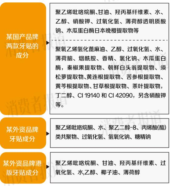 同时,《消费者报道》记者也查看了目前行业标准QB/T4857-2015《牙贴》,标准中明确要求过氧化物含量(以H₂O₂计)≤3.0%。