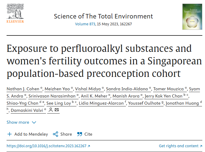 此外,2023年发表于《全环境科学》的一项研究表明,较高的PFAS暴露均与临床妊娠和活产概率的降低相关,样本血液中PFAS的浓度每增加一个四分位数,其临床妊娠和活产的平均可能性降低30%~40%。简言之,PFAS会影响怀孕及分娩率。