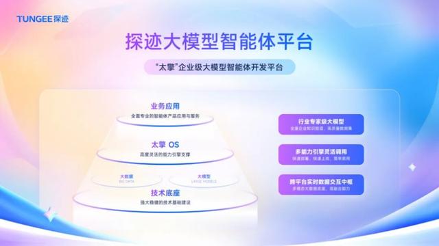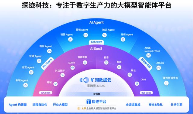 这个时候比拼的并不是产品设计,而是用户平时看不到的“底座”:平台和数据。它们才是决定产品走向的关键。一块是负责把大模型、业务流程和企业系统串起来的平台,一块是长期积累和治理的数据资产。探迹的版本,叫“太擎”和“旷湖”。