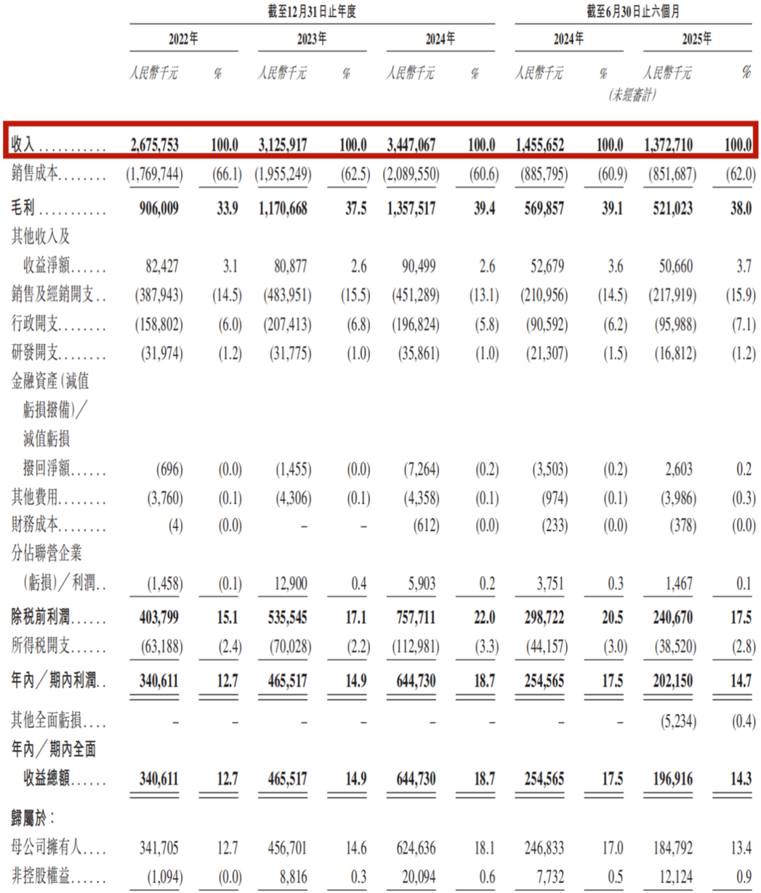 招股书显示,2022年至2024年,公司营收从26.76亿元增长至34.47亿元,三年复合增长率达13.5%,是中国前五大复合调味品企业中增长最快的。