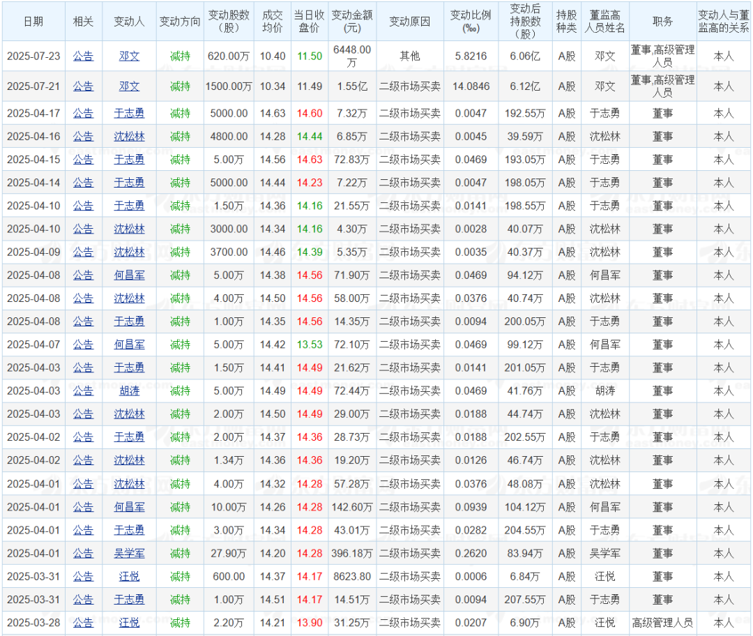 除邓文外,多名公司高管在今年3月至4月通过集中竞价减持股份: