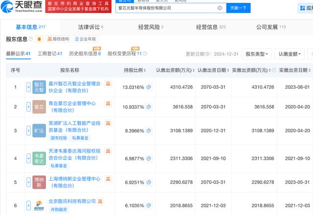 目前,爱芯元智的注册资本约为4.8亿元,法定代表人为刘建伟,主要股东包括嘉兴智芯元智企业管理合伙企业(有限合伙)、青岛爱芯企业管理中心(有限合伙)、芜湖旷沄人工智能产业投资基金(有限合伙)等。