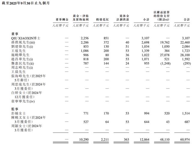 而2025年前三季度, QIU XIAOXIN、孙微风、刘建伟、王远、赵昌华、龚惠民从爱芯元智取得的薪酬合计分别约为310.7万元、2246.0万元、208.4万元、172.3万元、159.2万元和-29.3万元。