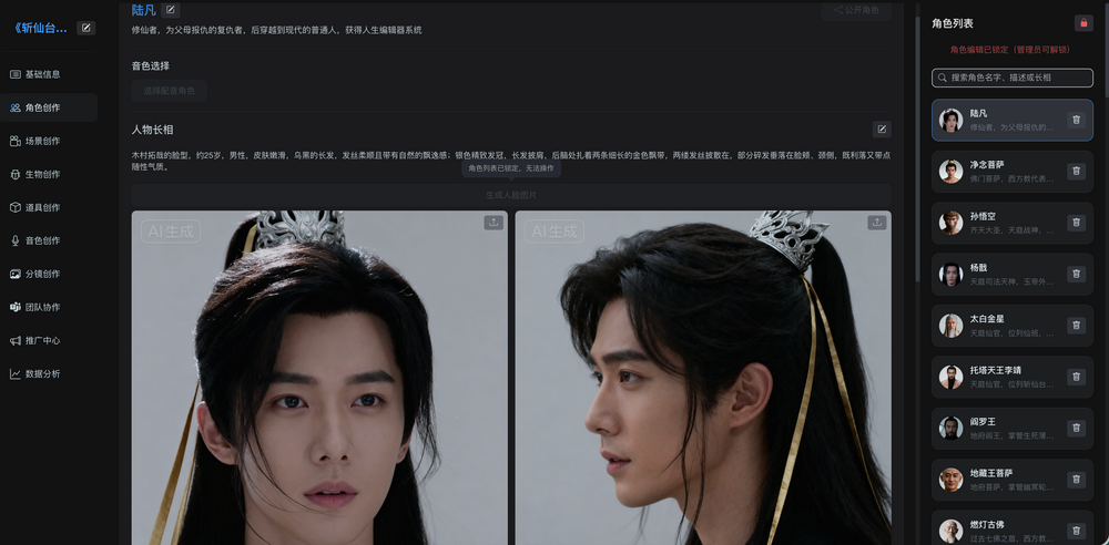 《斩仙台真人 AI 版》主角制作后台。(受访者供图)