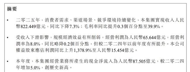 相比之下,蒙牛2025年的成绩单则更为复杂。其全年实现收入822.45亿元,同比下降7.3%,主要是由于支撑其业绩的液态奶出现了下滑,尤其是常温奶的下滑拖累了整个集团业绩;但权益股东应占利润同比暴增1378.9%至15.45亿元。