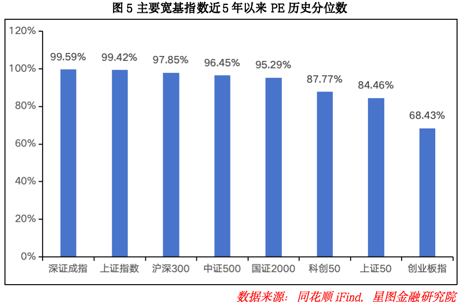 从近5年估值分位观察,A股主要宽基指数表现分化,上证指数、上证50、沪深300、创业板指估值分位上行,其余指数估值分位下行,市场整体估值处于历史高位区间。具体来看,深证成指、上证指数、沪深300、中证500、国证2000估值分位均处于90%以上历史高位;科创50、上证50估值分位位于80%以上;创业板指估值分位处于65%以上。当前A股估值结构性差异显著,成长风格板块估值高于价值风格板块,中小盘股估值高于大盘股。后续市场上行空间,或主要取决于政策催化力度与基本面修复进度。