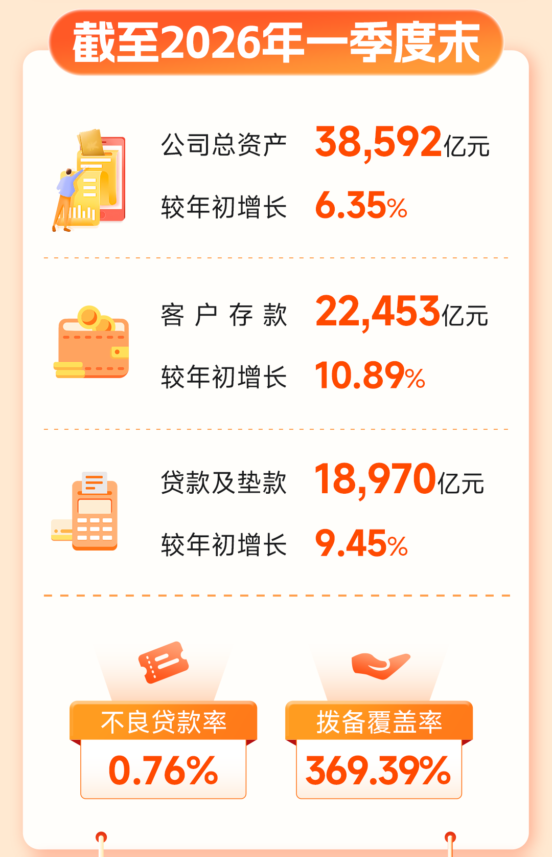 2026年一季度,宁波银行的不良贷款率为0.76%,自2007年上市以来始终保持在1%以下。拨备覆盖率为369.39%,风险抵补能力依旧良好。