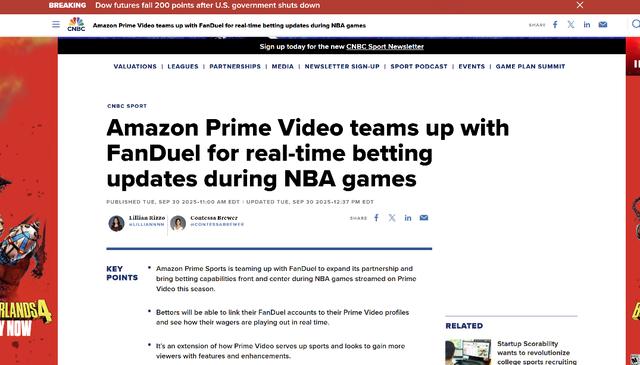 亚马逊的真正野心:成为全球体育产业的“操作系统”