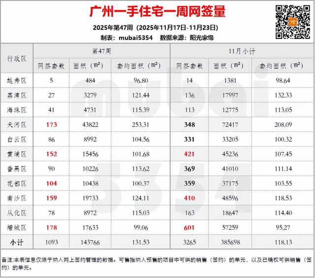 这周广州一手住宅网签大涨了20.5%,一共1093套。但最诡异的数据在于“套均面积”——天河区的套均网签面积居然飙到了253.31㎡!