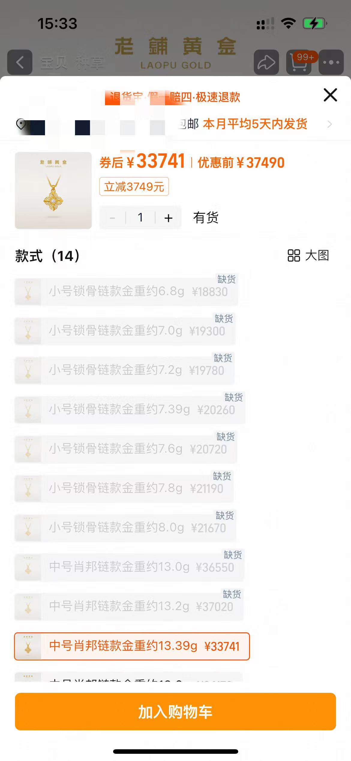 以老铺黄金古法手工足金项链十字金刚杵(2号)钻饰吊坠为例,前一日中号肖邦链款金重约13克,价格为26550元;到了28日,就已经上涨到33741元,涨幅约27%。另外一款七子葫芦吊坠珐琅红款约30克重最新售价73800元,较前一日涨幅约31%。