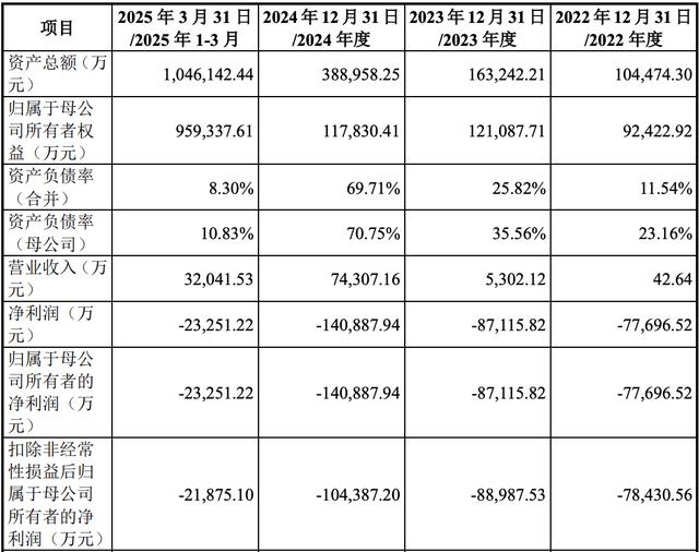 2022年、2023年和2024年度以及2025年第一季度,沐曦股份的营收分别约为42.64万元、5302.12万元、7.43亿元和3.20亿元,净亏损分别约7.77亿元、8.71亿元、14.09亿元和-2.33亿元,扣非后净利润分别约-7.84亿元、-8.90亿元、-10.44亿元和-2.19亿元。