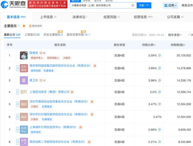 天眼查App信息显示,沐曦股份成立于2020年9月,于2025年1月改制为股份有限公司。目前,该公司的注册资本为3.6亿元,法定代表人为陈维良,主要股东包括上海骄迈、陈维良等。