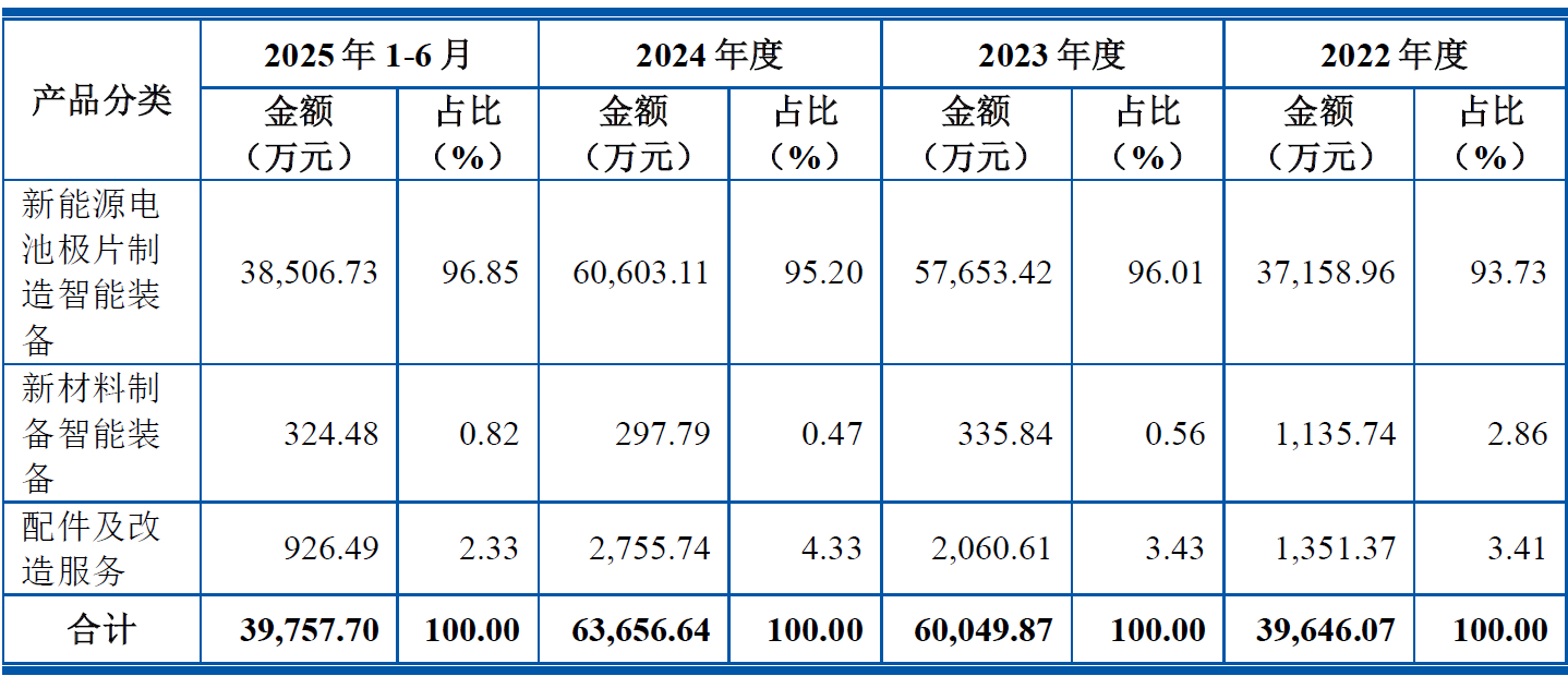 就当前收入结构看,电池极片制造装备的收入占比超过95%,是公司的最主要收入贡献来源。