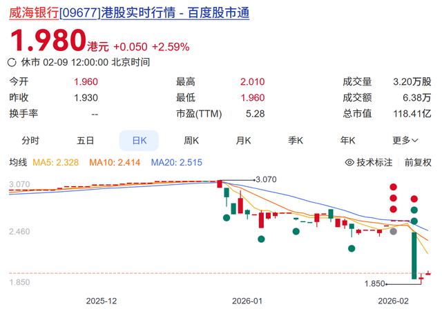 近日,威海银行上演了一场震惊市场的股价“闪崩”:单日跌幅高达26.54%,收盘报1.91港元,创下该行自2020年上市以来的最低水平。