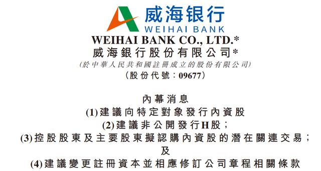 2025年7月,威海银行启动了30亿元定增计划,向国资背景机构发行股份,募集资金全部用于补充核心一级资本。