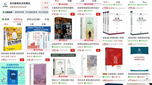 贝多商业&贝多财经注意到,相关被举报的链接虽已下架,但涉事店铺内依旧存在大量类似的低价盗版书籍链接。此外,《民事刑事二审再审改判案例》等同法律实务类图书也在拼多多上被商家以远低于正版的价格销售。