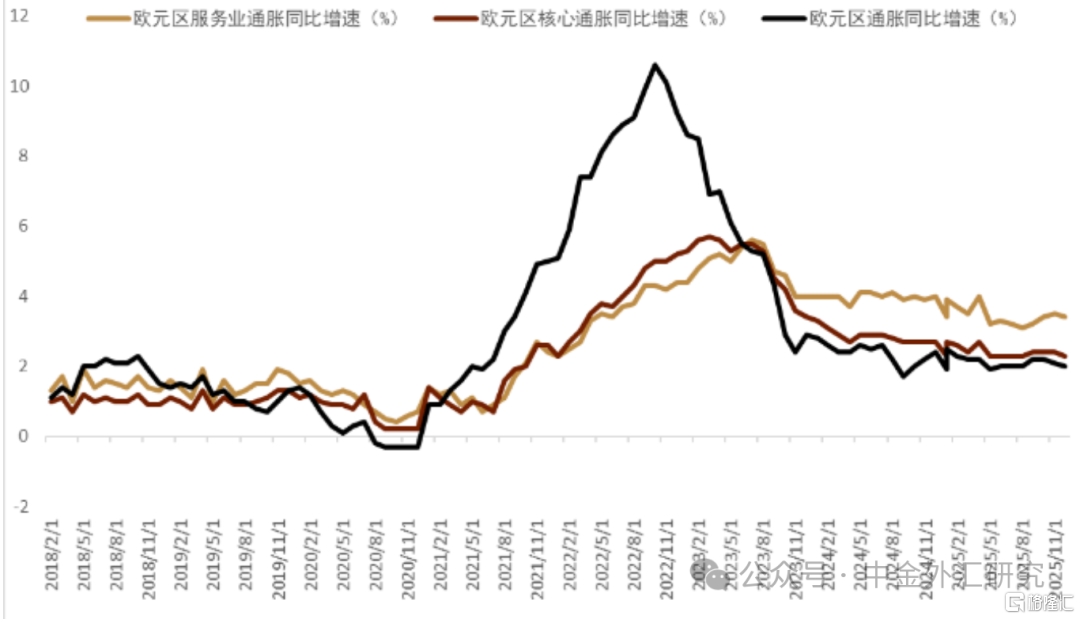 欧央行2月议息会议大概率按兵不动 我们认为2月ECB会议大概率会继续按兵不动,但欧元近期的大幅上涨很可能成为欧央行决策会议上讨论的话题。目前市场对今年再次降息依旧没有任何的预期。我们认为,欧央行的决策者本次会上不大可能采取可能进一步推高欧元的鹰派立场,反而可能会强调欧元走强对欧元区经济造成的拖累。首先,自上次会议以来,欧元区最大的变化可能是12月通胀有所下降。我们预计在2月欧央行会议当天发布的数据可能将显示通胀进一步小幅放缓,再次略低于欧央行2%的目标。而考虑到因预期服务业通胀回落速度将放缓,欧央行在去年12月上调了大部分通胀预测。我们认为市场将重点关注本次会后声明中风险评估的部分,尤其其中是否出现反映通胀前景担忧加剧的迹象。去年12月欧央行关于通胀威胁的表述略显鹰派,增加了“工资压力减缓步伐放慢”作为通胀上行的风险因素。