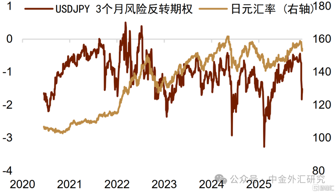 美元对日元:美元兑日元的隐含波动率同样有所走高,处于2025年10月以来的高点。