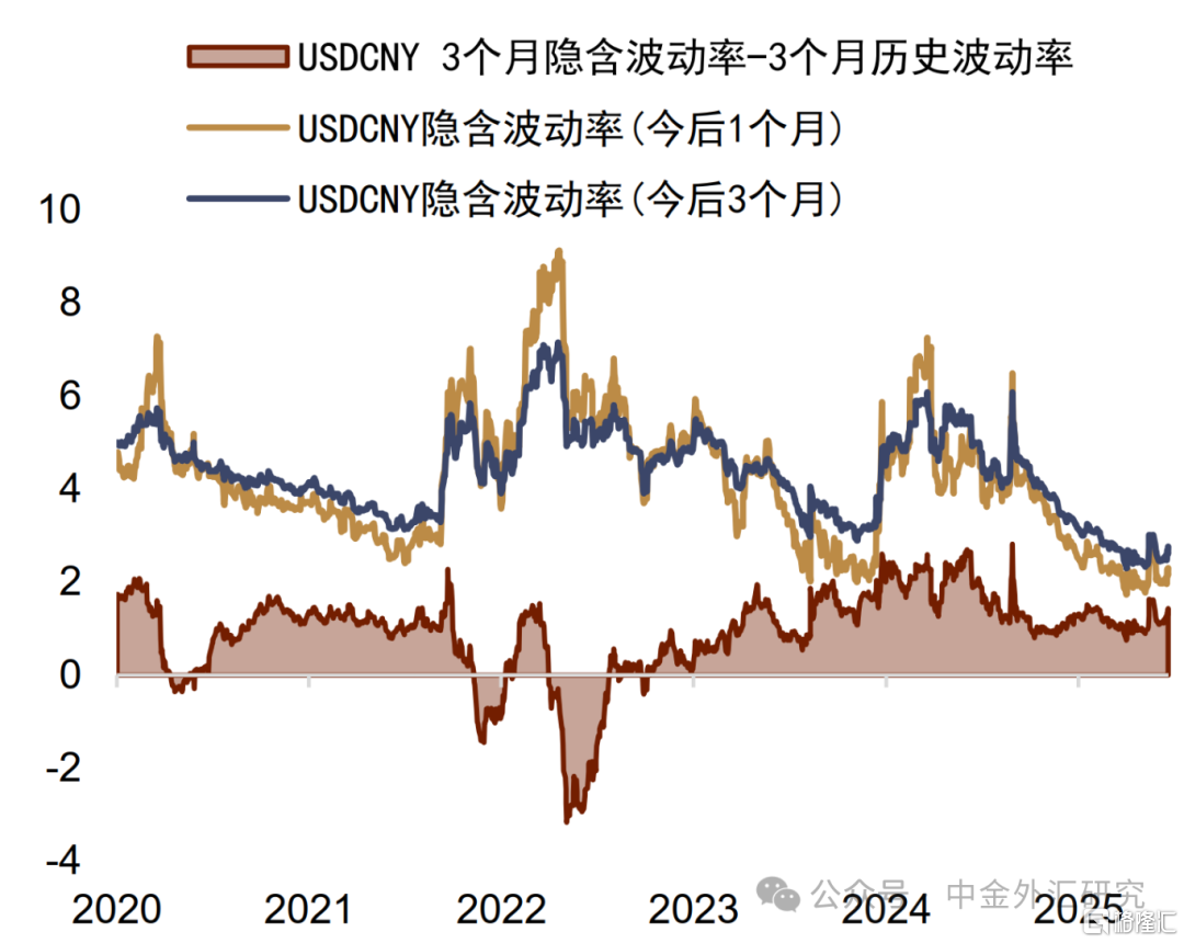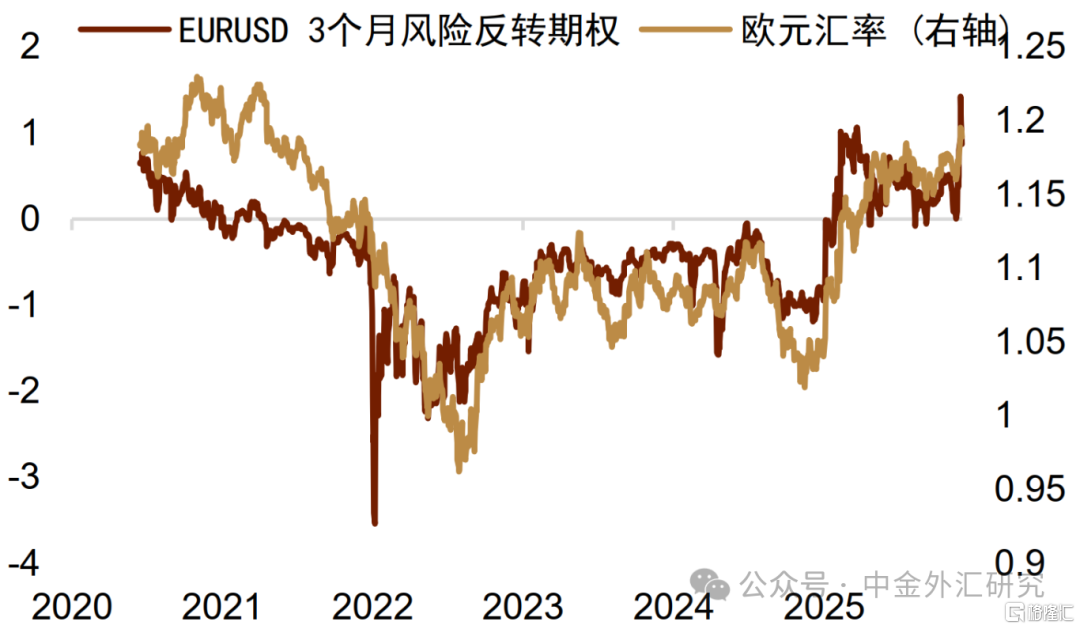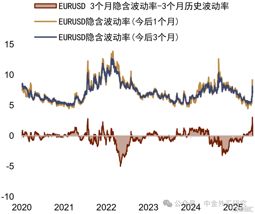 欧元对美元:欧元对美元的隐含波动率有所抬升,并在月末走升至2025年的9月初水平。