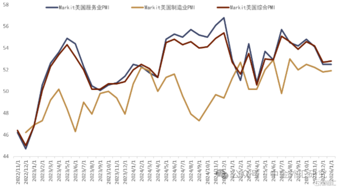 1月公布的美国经济数据整体较强 虽然此前市场对美国经济一度存疑,但1月公布的经济数据却依旧展示出韧性:劳动力市场方面,截至1月24日当周的首次申领失业救济人数下降至20.9万,低于市场预期的20.5万。而截至1月17日当周的总体持续申领人数则减少了3.8万至182.7万,略低于2025年同比周的184.9万。这可能表明劳动力市场整体状况可能在趋稳。而标普全球公布的1月的最新数据显示,美国企业活动在1月整体维持强势:1月综合PMI初值录得52.8,略高于前值的52.7。制造业PMI初值录得51.9,同样高于前值的51.8。而服务业PMI初值录得52.5,和前值持平(图表14)。总体看,美国经济数据在2026年1月的表现整体限制了美元的下行幅度,而从花旗宏观经济意外指数来看,虽然美国经济的较强表现近期和美元走势出现了分化(图表15),但我们认为如果经济数据继可以在2月延续近期的势头,那么这可能会帮助美元有所企稳。