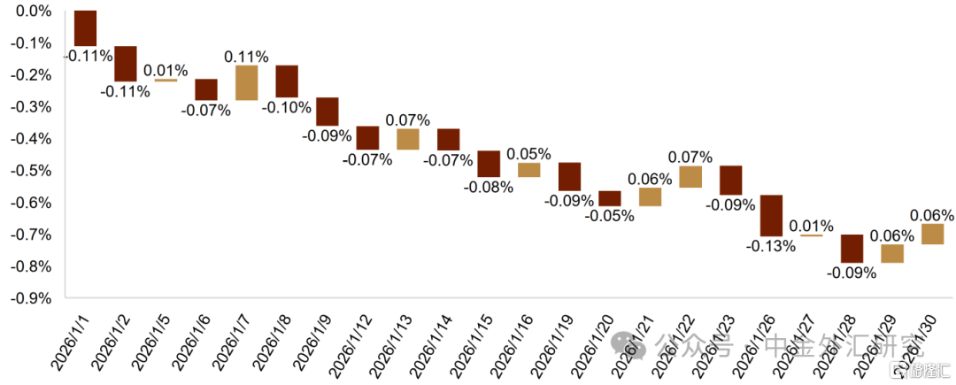 1月美元整体走低 美元在1月先是小幅上涨至去年12月初的高点,此后出现明显回落并且一度跌至年内新低,但最近一周有所反弹,整体出现下行的走势。美国经济数据整体走强支撑了美元月初的上行,此后特朗普的对外政策以及市场对政策不确定性的担忧使得美元出现大幅下行,但1月FOMC会议整体更偏鹰派,加之特朗普近期最终选择了更加鹰派的沃什来继任美联储主席,这使得市场对美联储未来的降息预期有所回落,这也带动了美元近期的反弹。总体看,截止1月31日收盘,美元收跌1.35%左右,领跌G10货币(图表12)。