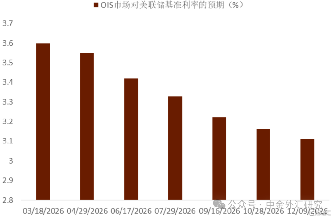 1月FOMC会议如期按兵不动 内部分歧有所缓解且整体基调偏鹰 美联储1月FOMC会议如期按兵不动[4] 。本次利率决议有两票反对,比上次的3票反对票少1票,其中,沃勒首次投出反对票,和鸽派美联储理事米兰的降息主张一致。货币政策声明的措辞出现了调整[5] :会议声明表示,经济活动稳步扩张,而非上次的表述是“扩张缓和”,而就业方面,本次声明改为:失业率显示企稳迹象,同时也删除了“近几个月就业下行风险已增加”的表述;通胀方面,本次声明重申通胀压力仍然略微高企。随后鲍威尔在会后的发布会上,同样延续了“审慎观望数据”的政策指引,并没有释放关于3月可能降息的信号。从鲍威尔的表态来看,我们认为其对风险平衡的观点有所变化:他承认“通胀上行风险和就业下行风险可能都有所减弱”而“关税对商品价格的影响可能会逐步见顶”,而这些在我们看来都可能意味着短期内再次降息的必要性已经明显下降。整体看,我们认为本次会议上美联储释放出更偏鹰派的信号,市场在本次FOMC会议之后也做出了反应。目前OIS市场对美联储今年6月前的降息预期自月初的35基点下降至仅有20基点,对年内依旧有2次的降息预期(图表16)。