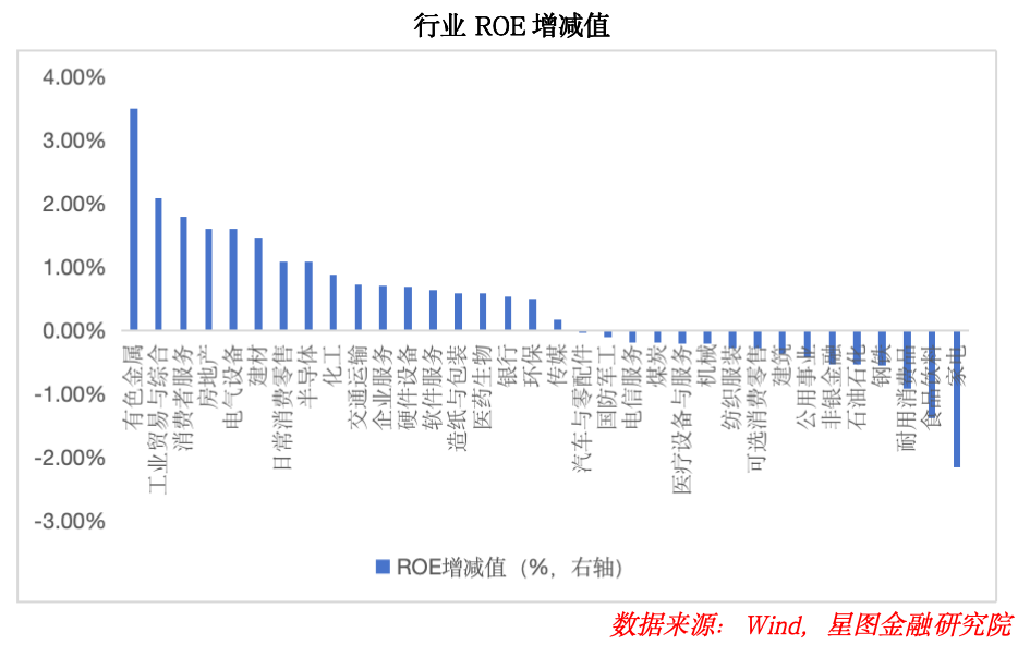 从ROE变化看,各行业同样呈现分化格局,资源与设备板块上修,消费板块承压。有色金属、工业贸易与综合、电气设备等板块ROE提升幅度较大,资本回报能力明显改善;而家电、食品饮料以及耐用消费品等消费板块ROE下滑,修复节奏偏缓,消费端整体依然承压。