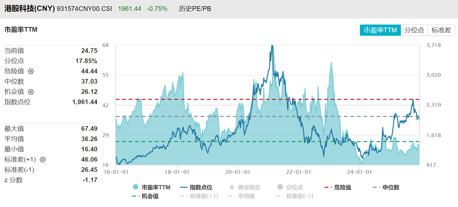 其一,港股本轮经历的市场调整相当于为投资者增厚了安全边际,其全球范围内的估值吸引力有望上升。部分代表中国新经济的核心科技资产,其估值已经回调至更具吸引力的区间。港股科技50ETF(159750)跟踪的港股科技指数最新估值24.75倍PE-TTM,位于25%历史分位数,整体处于较低区域,相比纳斯达克指数(41x)、创业板指(40x)性价比显著。