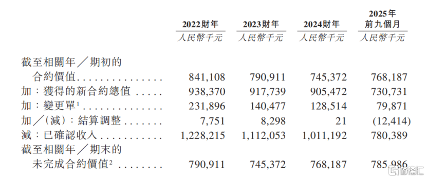 未完成项目的合约价值变动,来源:招股书