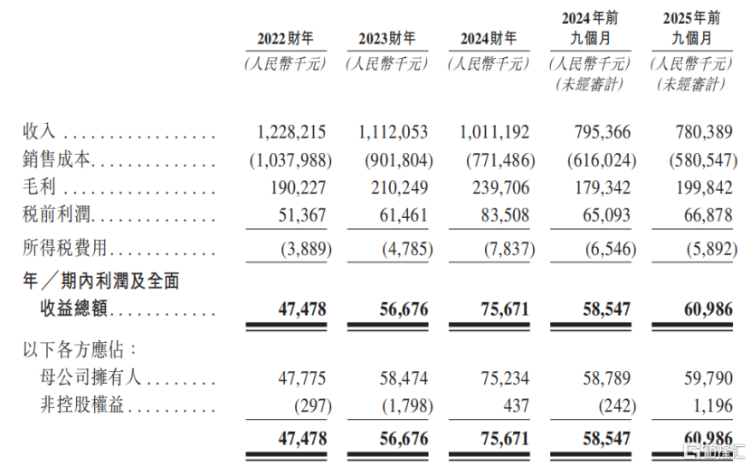2022年、2023年、2024年及2025年1-9月(报告期),公司的收入分别为12.28亿元、11.12亿元、10.11亿元、7.8亿元。