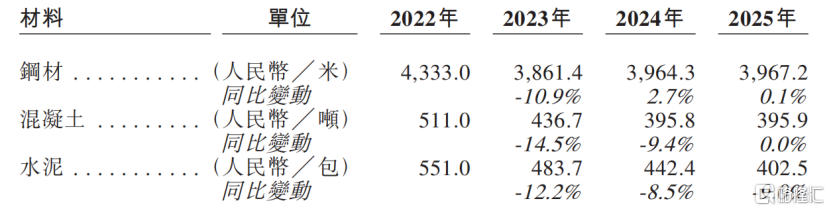 钢材、混凝土和水泥的年化价格,来源:招股书