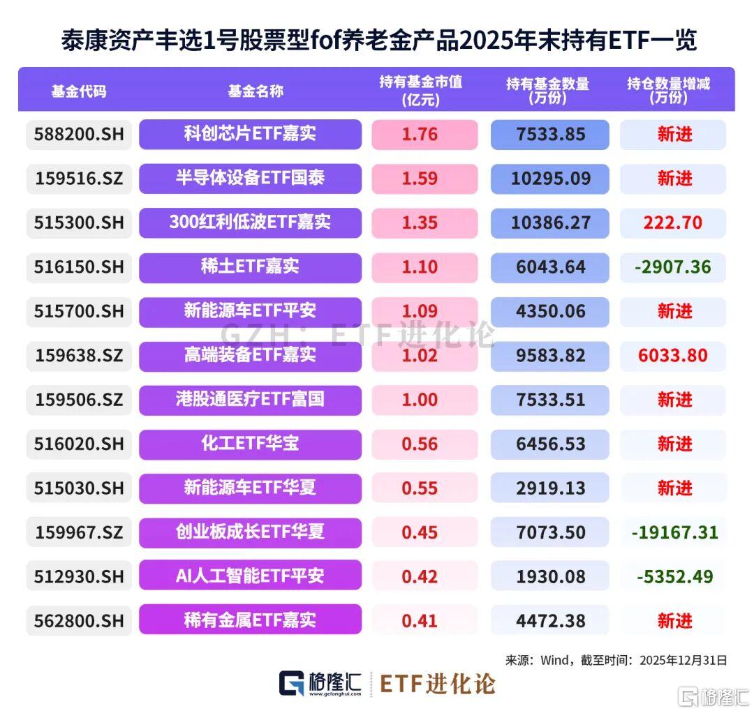 去年下半年,泰康资产丰选1号股票型fof养老金产品新进:科创芯片ETF嘉实、半导体设备ETF国泰、新能源车ETF平安;