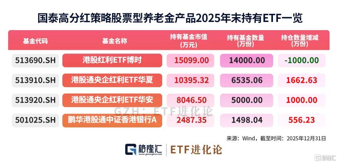 国泰高分红策略股票型养老金产品持有:港股红利ETF博时、港股通央企红利ETF华夏和港股通央企红利ETF华安。