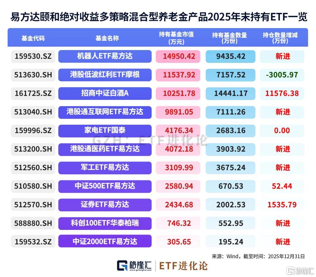 易方达颐和绝对收益多策略混合型养老金产品新进:机器人ETF易方达、港股通互联网ETF易方达;
