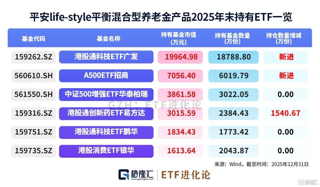平安life-style平衡混合型养老金产品新进:港股通科技ETF广发、A500ETF招商;