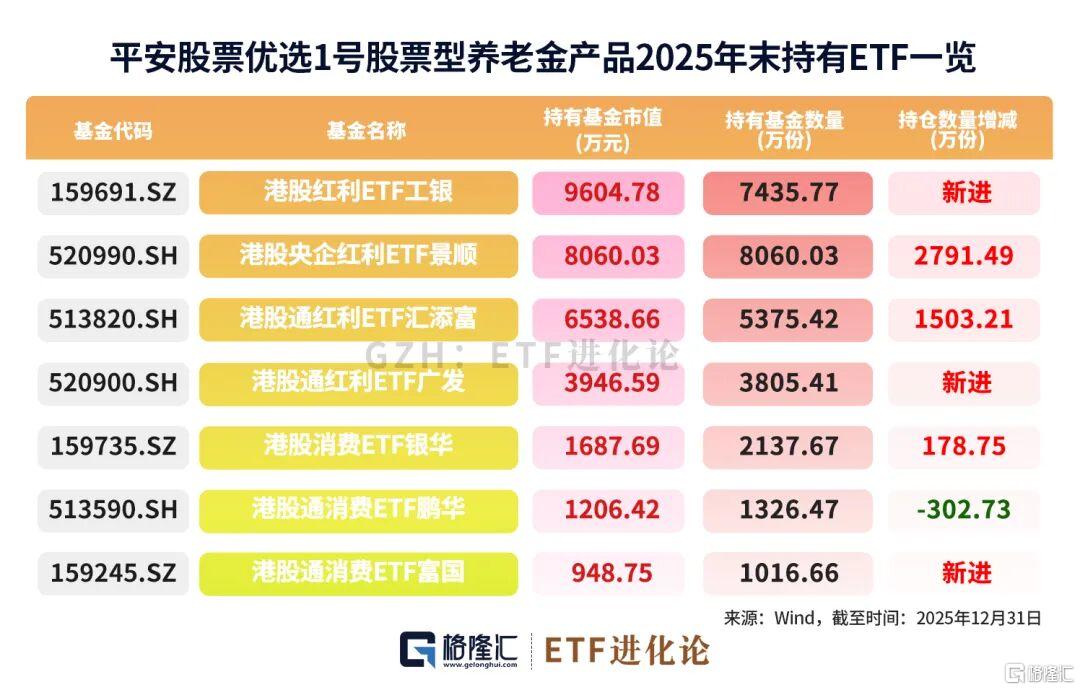 平安股票优选1号股票型养老金产品新进:港股红利ETF工银;