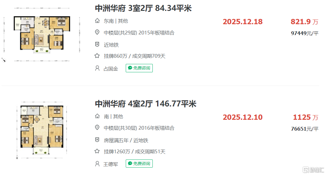 距离珺悦名都步行约460米的中洲华府,去年12月成交一套约146.77平户型,成交总价约1125万,折合单价约7.67万/平。