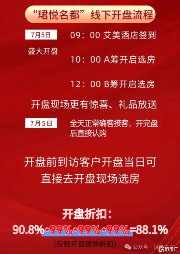 项目是去年开盘,给出的折扣是4个“99折”,综合折扣最高约88.1折。
