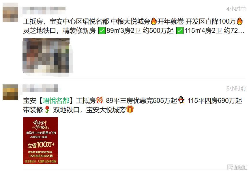 多个渠道消息显示,项目特惠房源在去年开盘基础上便宜100万左右;89平总价510万起;工抵房89平三房优惠完505万起。