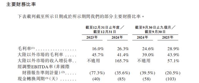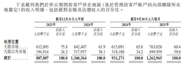 其中,关键的一组数据是区域差异。2023年,大陆以外市场收入占比为24.2%,到2024年升到38.1%,截至2025年9月30日止九个月为39.6%。