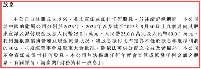 在实现持续盈利的同时,格米莱也在持续分红。据招股书披露,该公司于2023年、2024年度和2025年前三季度分别进行现金分红2500万元、2500万元和8000万元,合计1.3亿元,高于同期的净利润规模。
