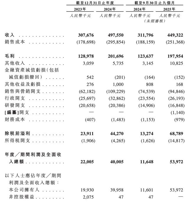 业绩方面,2023年、2024年度和2025年前9个月(前三季度),格米莱的营收分别约为3.08亿元、4.98亿元和4.49亿元,净利润分别约为2200.5万元、4000.5万元、5397.2万元。