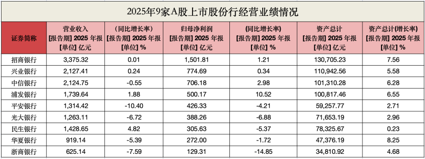 2025年,9家股份行仍然保持“对公走强,零售趋弱”的格局。