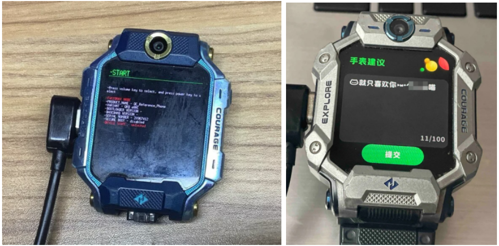 ▲被破解的小天才手表和刷机文件