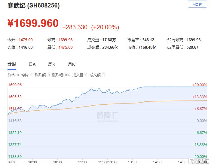 寒武纪:今日涨停,换手率4.24%,成交量17.88万手,成交额284.66亿元。龙虎榜数据显示,机构合计净卖出6.81亿元,北向资金合计净买入16.81亿元。