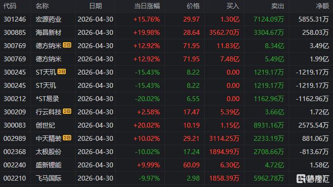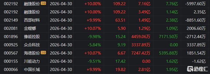 龙虎榜单日净卖出额前三为川能动力、美诺华、豫能控股,分别为3.93亿元、3.22亿元、2.83亿元。